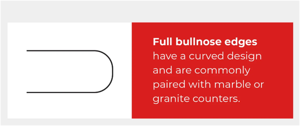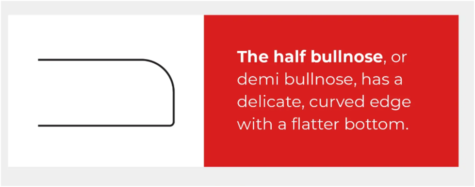 - ¼ or ½ Bullnose: Only the top edge is rounded to varying degrees (¼ or ½ inch).